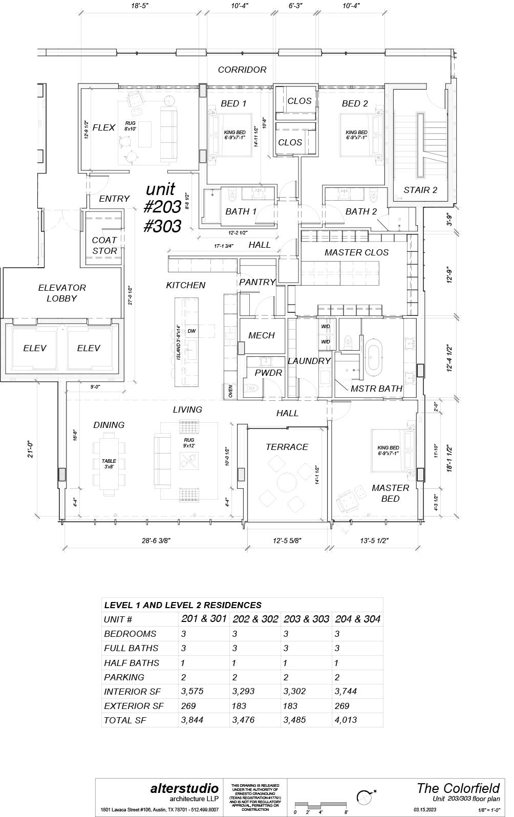 303 LEVEL 2&3 RESIDENCIES UNIT # 203 / 303 BEDS 3 BATHS 3.5 INTERIOR SF 3,302 EXTERIOR SF 183 TOTAL SF 3,485 Check Availibility Residence 3033 bed, 3.5 bath, 4,069 total sf Residence 3033 bed, 3.5 bath, 4,069 total sf